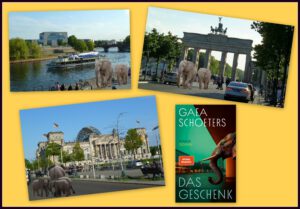 Von anderer Tragweite sind die Schwierigkeiten von Bundeskanzler Hans Christian Winkler im Roman Das Geschenk der 1976 geborenen flämischen Autorin Gaea Schoeters, denn wie von Zauberhand tauchen in Berlin und Umgebung plötzlich 20.000 afrikanische Elefanten auf. Ein Anruf des botswanischen Präsidenten schafft Klarheit: Die Dickhäuter sind weder Terroranschlag noch Spionageangriff, sondern die Antwort auf das vom Bundestag mit deutlicher Mehrheit verabschiedete sogenannte „Elfenbeingesetz“, das die Bedingungen für den Import von exotischen Jagdtrophäen beträchtlich verschärft. Das tierische Geschenk ist vergiftet: